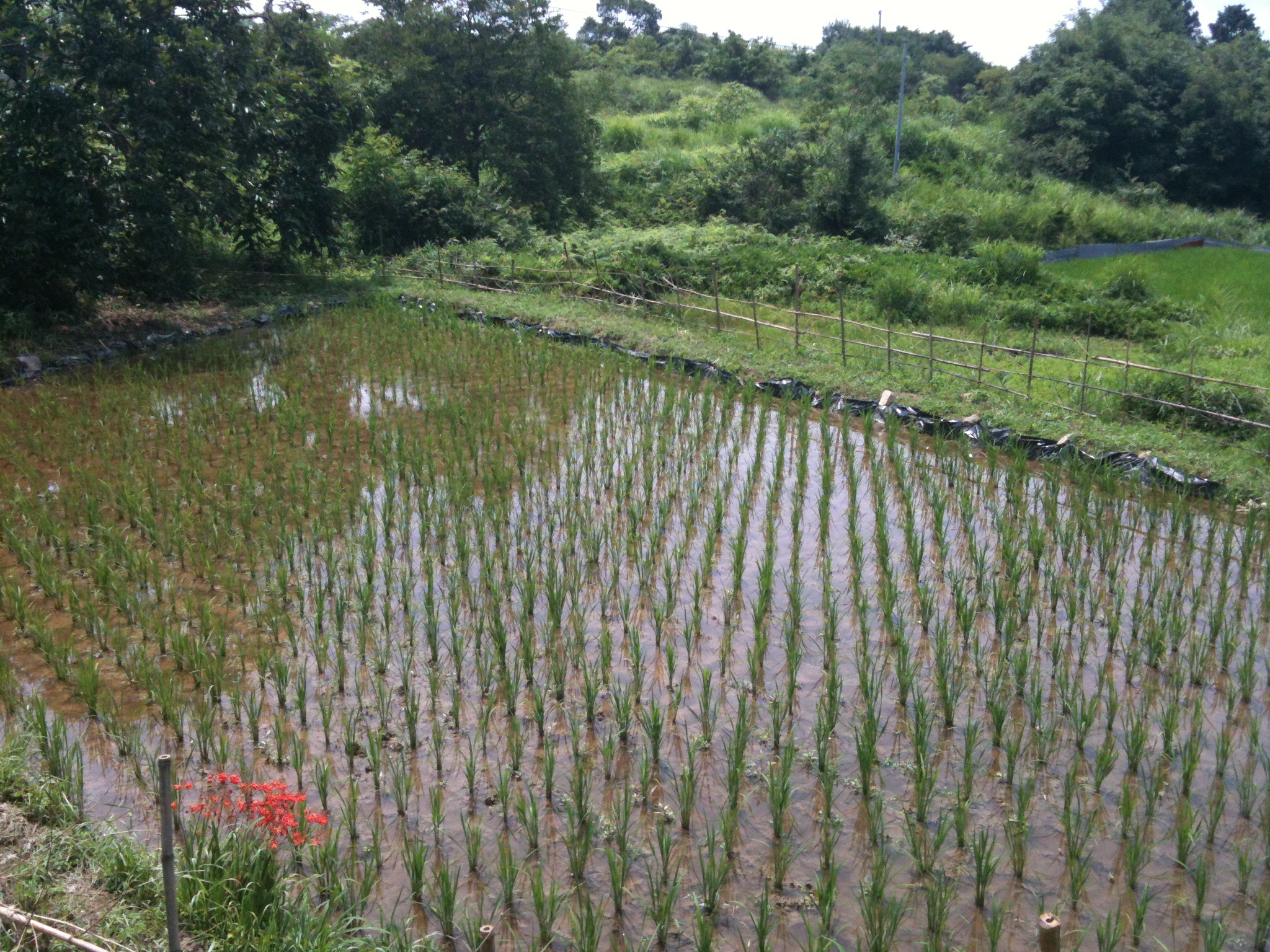 一度は水がたまった田んぼは、ここにきてひび割れているけれど大丈夫。
