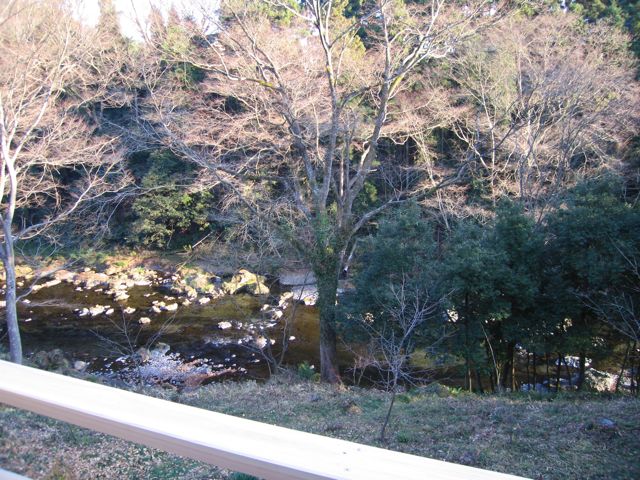 日当り良好、景色は最高、薪ストーブにおせんべいと、山のわき水で淹れたお茶まで