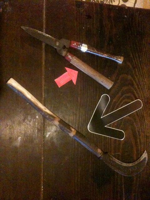 使いすぎて壊れた鎌やハサミの柄を交換したり